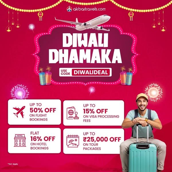 Speaking about the Diwali Travel Sale, Nikhil Krishnan, CEO of Akbar Travels, said, “Festivals are a time when people want to travel, whether to go on a holiday, meet family or celebrate in a special way. Our Diwali Dhamaka Deals are designed to meet this growing demand, offering affordable and value-packed deals for every traveller.”